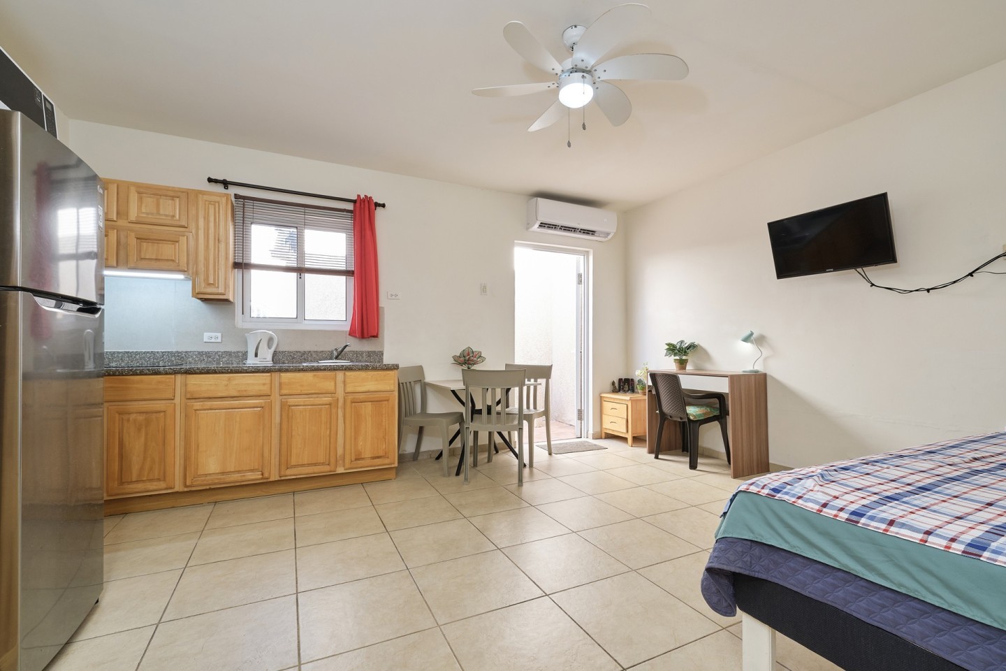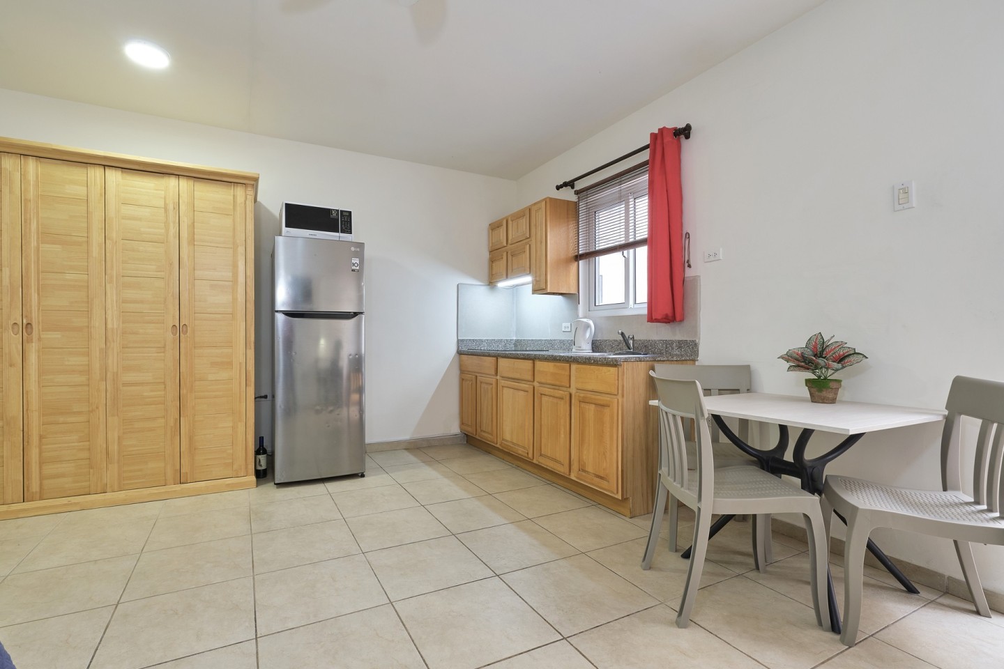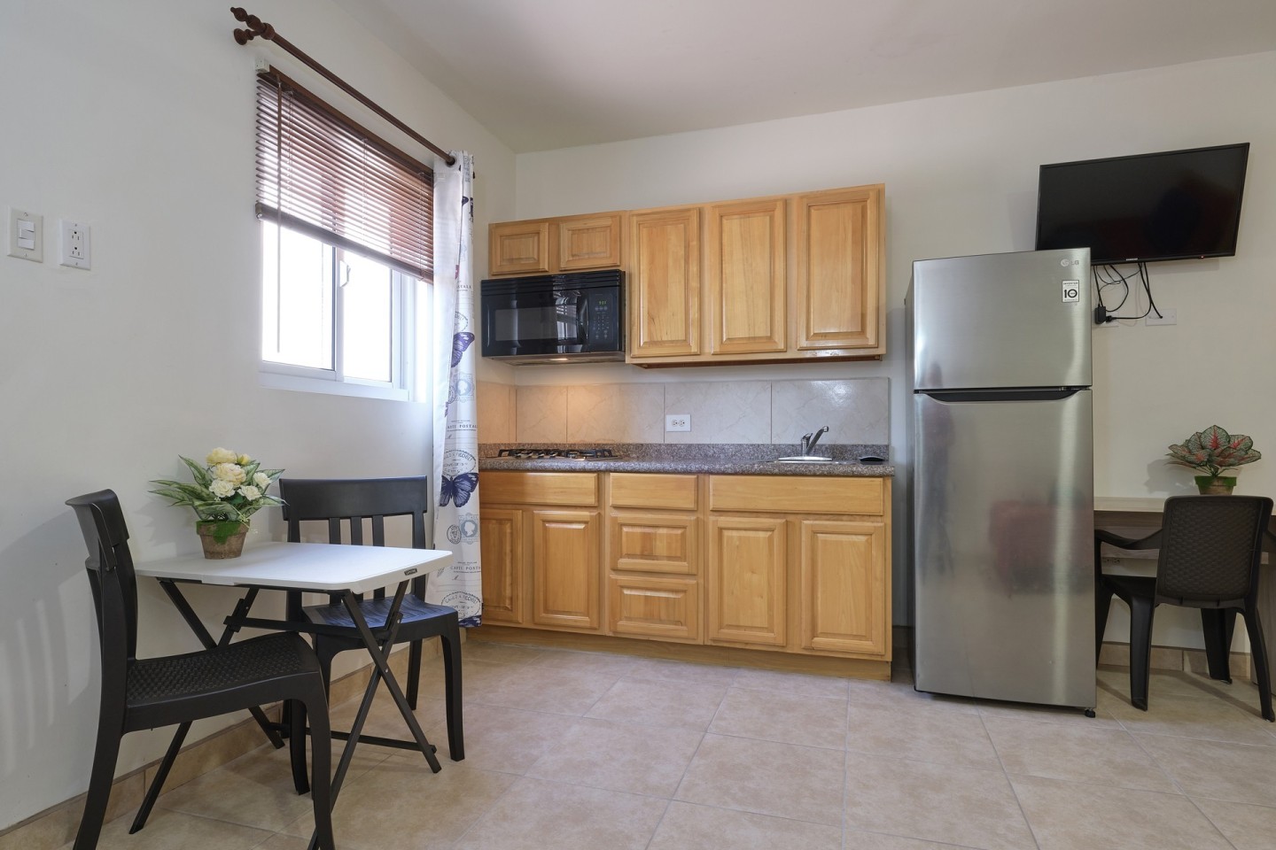 All apartments are equipped with air-conditioning, individual water and electricity meters, and kitchens featuring granite countertops, cabinetry, stainless steel sinks and stainless steel cooking tops. Ten units use gas for cooking, while two units are equipped with electric stoves. The electricity meters for the apartments operate on a prepaid basis, while only the main (general) meter is postpaid. Currently, all apartments are connected to IPTV and internet service from Setar, each with its own individual modem/router box.