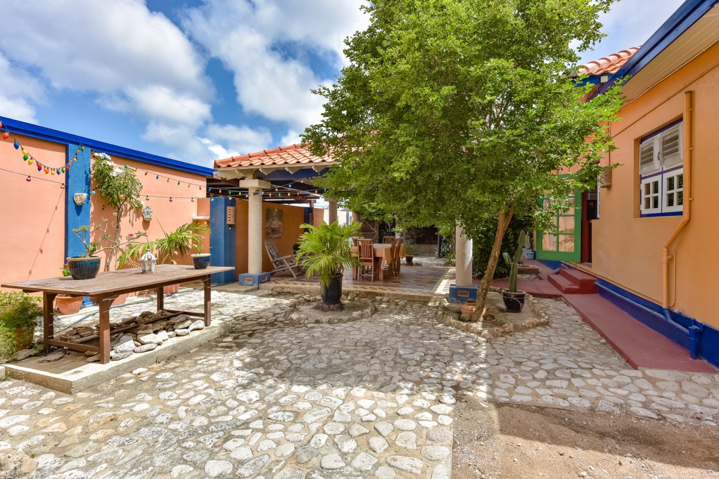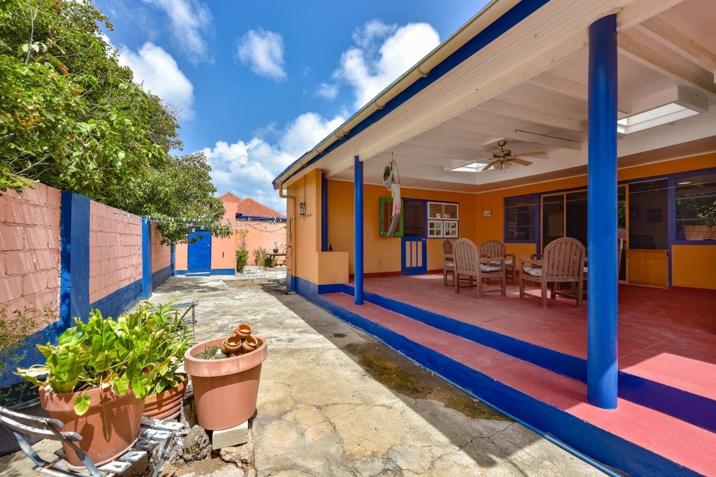 Located in Oranjestad on the "De La Sallestraat" road, you will find this charming 4 bedroom, 3 bathroom home with large entryway, open kitchen, covered patio, gazebo and private studio apartment.