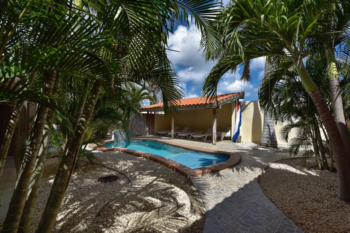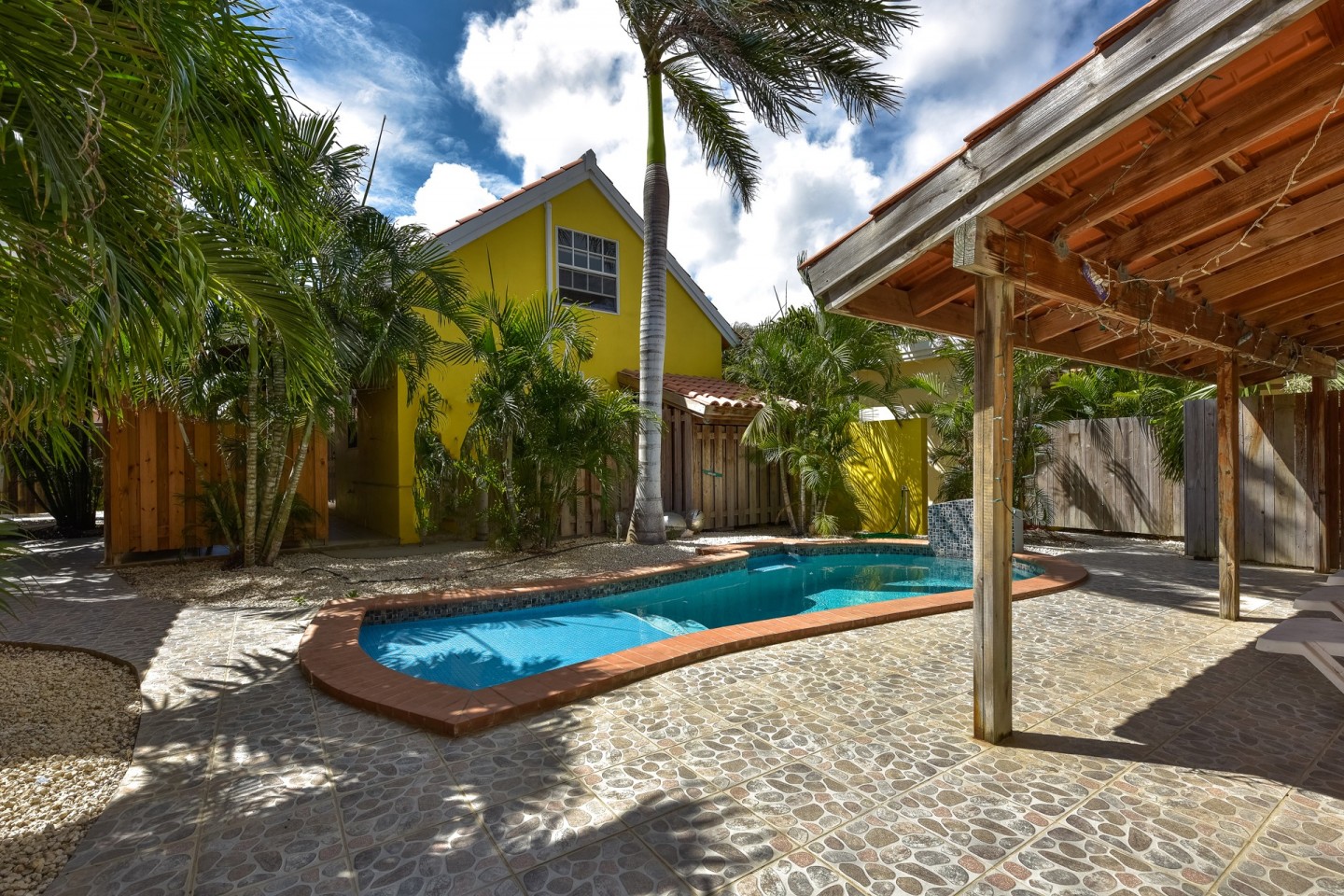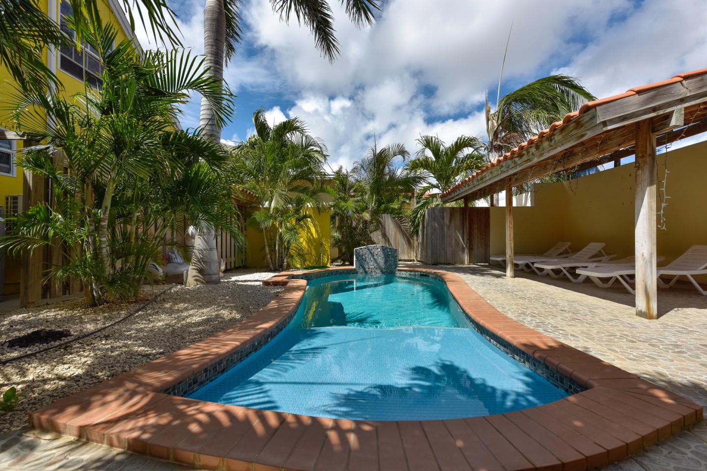 The beautiful tropical garden has a shared plunge pool with a gazebo. Lounge by the pool and enjoy Aruba's breeze in the sunshine.