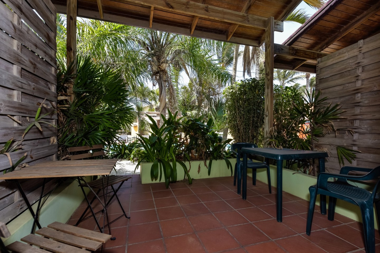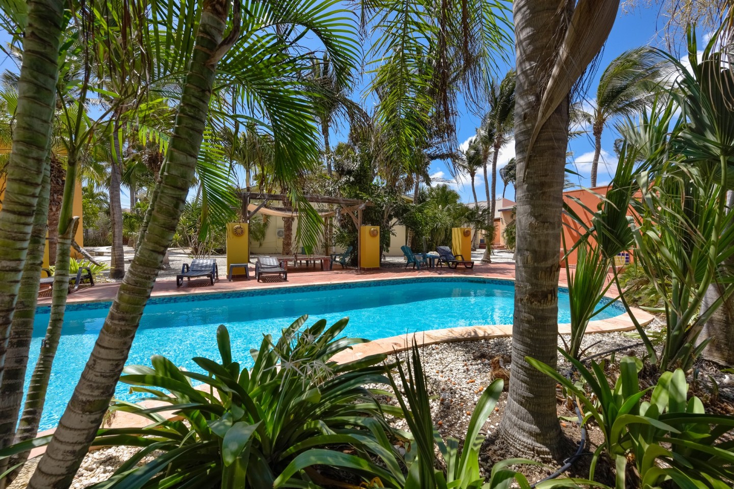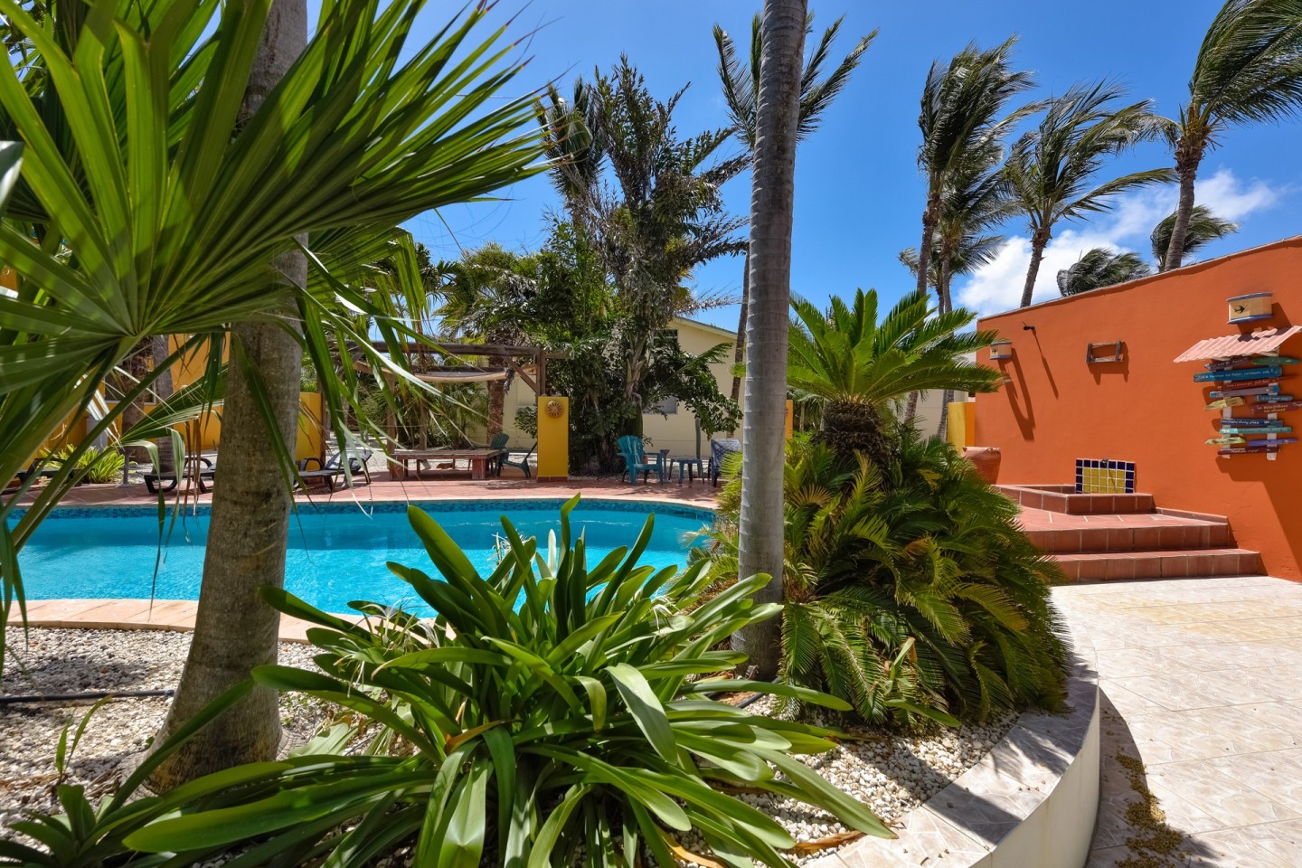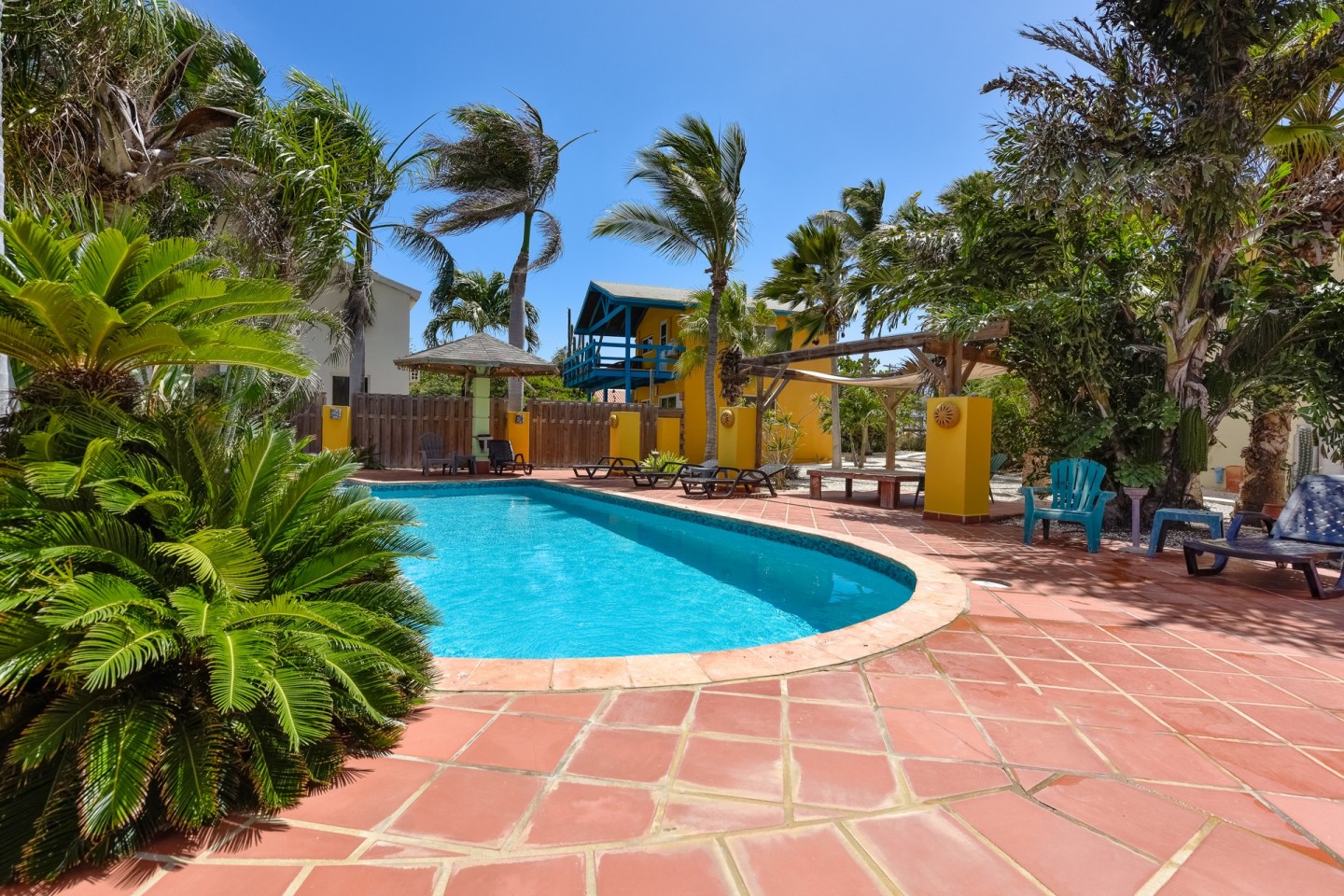 The lush tropical garden has several gazebo's; the perfect spot to relax and unwind. The large swimming pool is on the parcel of Papaya 9-K and conveniently located between the buildings. A laundry room can be found there as well.