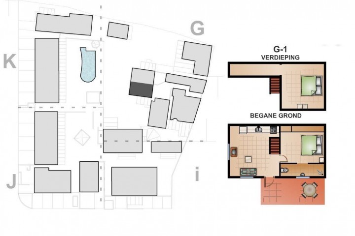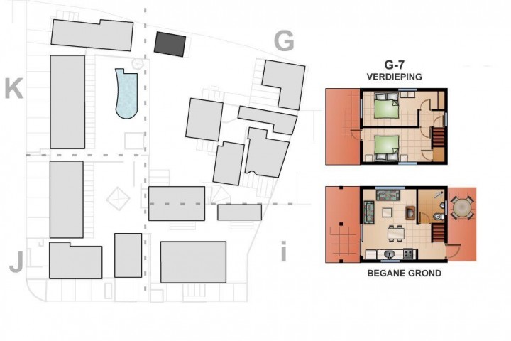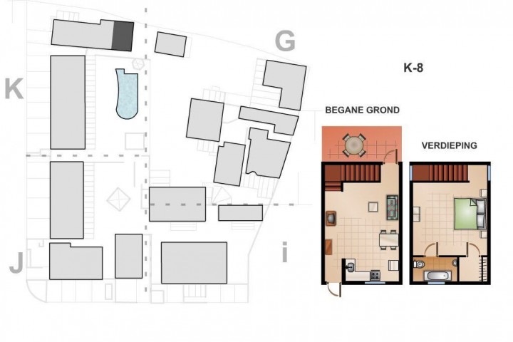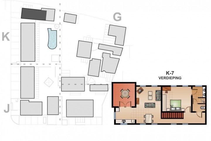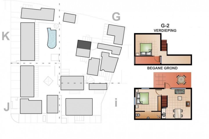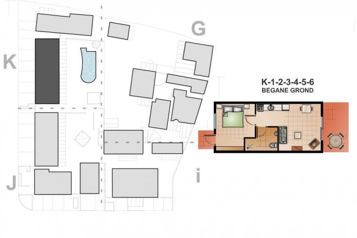 Each apartment and the home have a new kitchen with a granite counter top new inverter refrigerators and a private parking. All the bedrooms have inverter split unit airco's and build-in closets. Some living rooms also have airconditioning. Several apartments have an electric boiler for warm water supply and some apartments have a balcony on the first floor. The sewage system runs to some cess pools with separated drip irrigation systems and pumps.