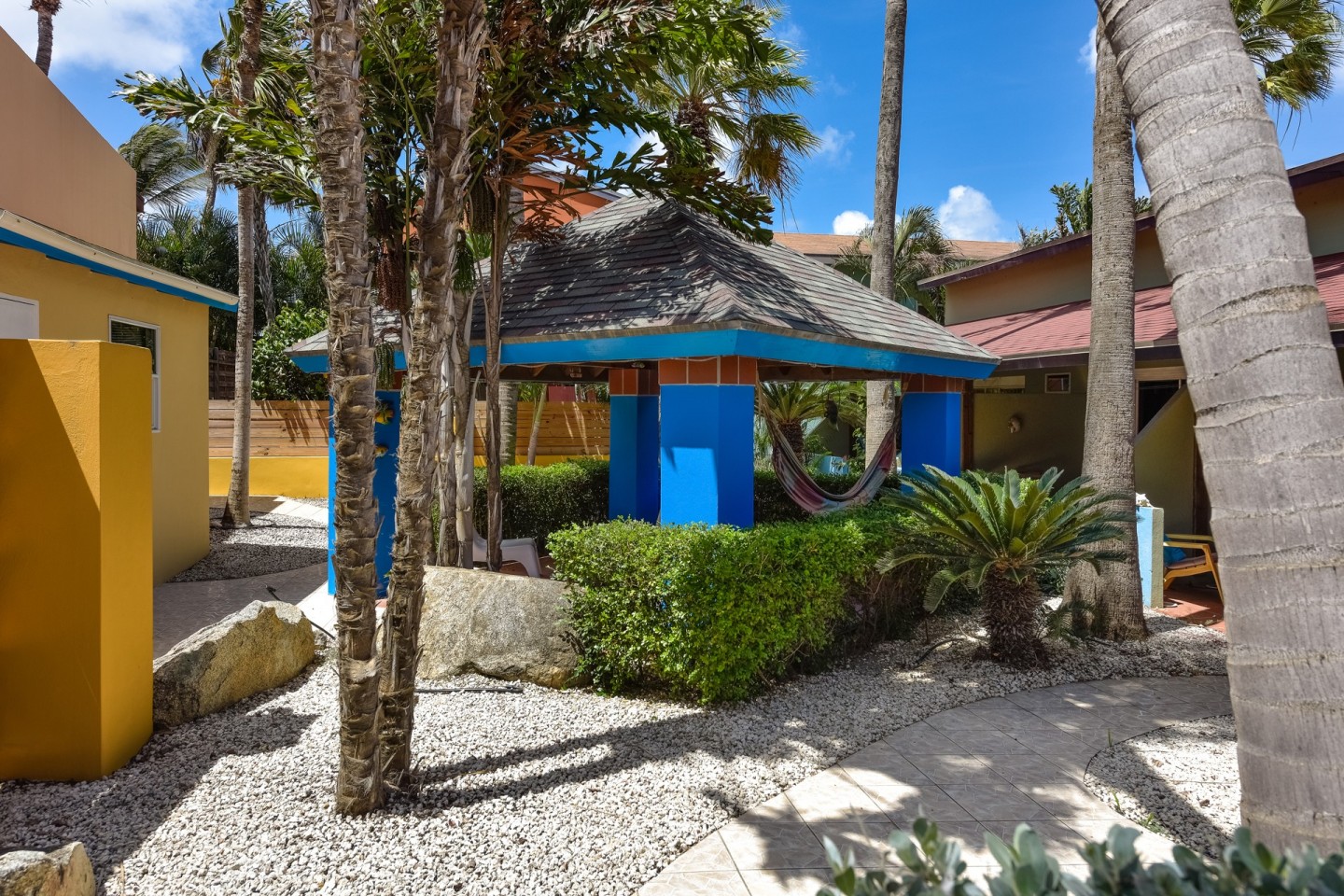 Located in the quiet residential neighborhood of Papaya, you will find this well-maintained building complex featuring three buildings with a home and six apartments, a gazebo and a storage. It is build on 1.000 m2 of property land. Only a 10 minute drive from the center of Oranjestad, the high-rise hotels, top restaurants, Paseo Herencia Mall and some of Aruba's best beaches e.g. Palm Beach, Eagle Beach, Malmok. You're never more than a short 5 minute drive away from local supermarkets and schools in the area.